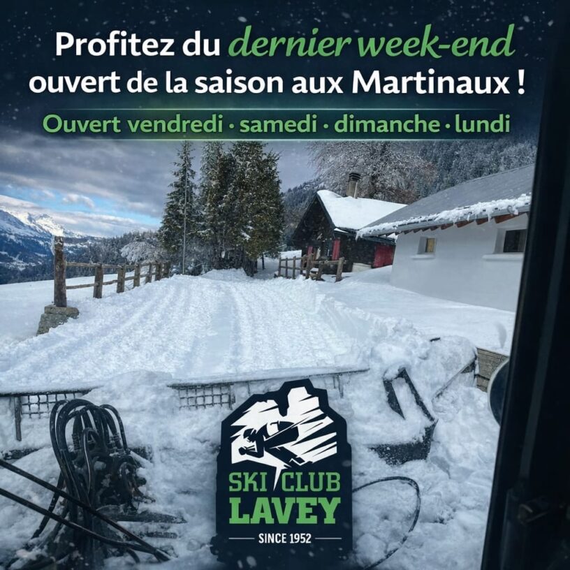 Dernier weekend vendredi 3, samedi 4, dimanche 5, lundi 6 avril 2026 ouvert, le téléski et la buvette sont à votre disposition, dans une ambiance familiale.